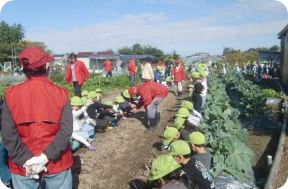 いきいき農園(東茱萸木3丁目)では、晴天のもと本年も第七小学校2年生(105名)児童を 招き、恒例の「芋ほり体験」が行われました。