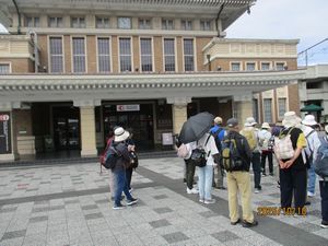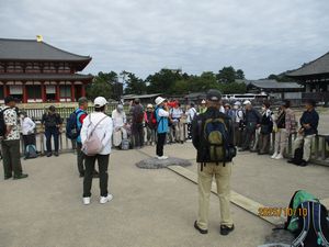 JR奈良駅(左)、興福寺(右)で、スタッフから今日の行程他の説明