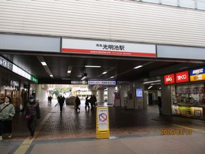 雨乞蛙(左)、光明池駅への帰路(中)、光明池駅前(右)に到着