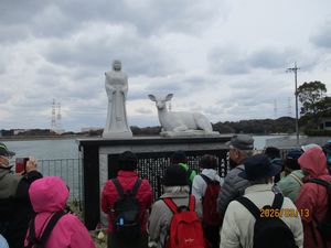 光明池の堤防・光明池守護神社の横に鎮座する雨乞蛙は、カエルのGPSアートのコースです。